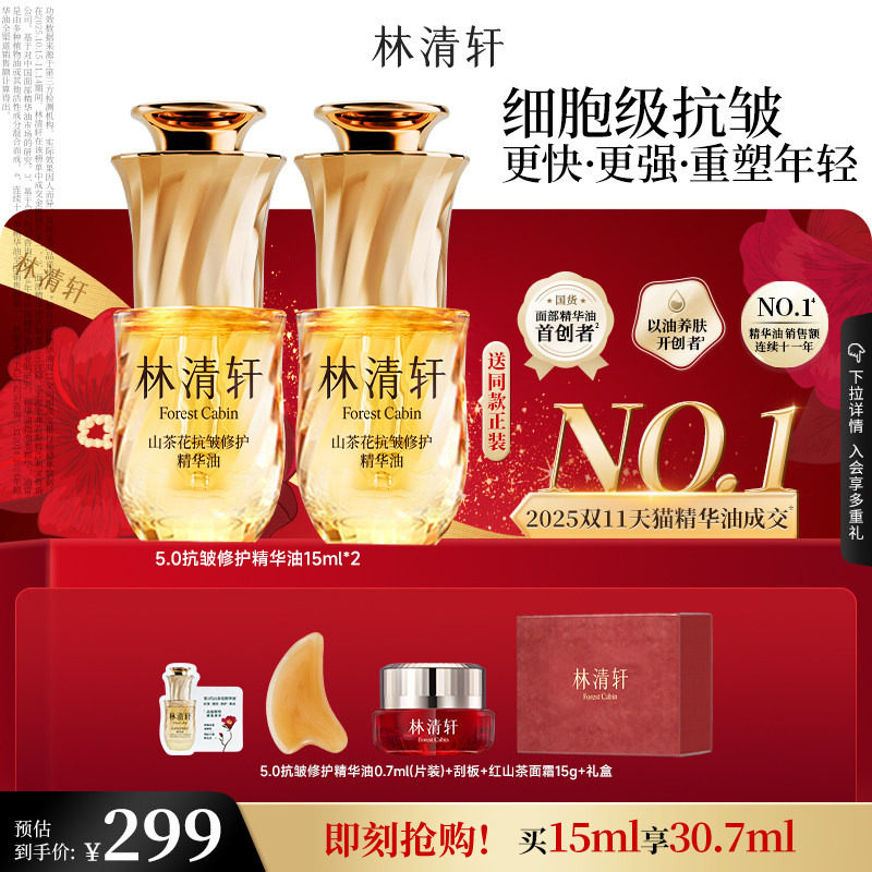 林清轩山茶花油5.0精华油细胞级淡纹抗皱紧致 新年礼物