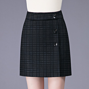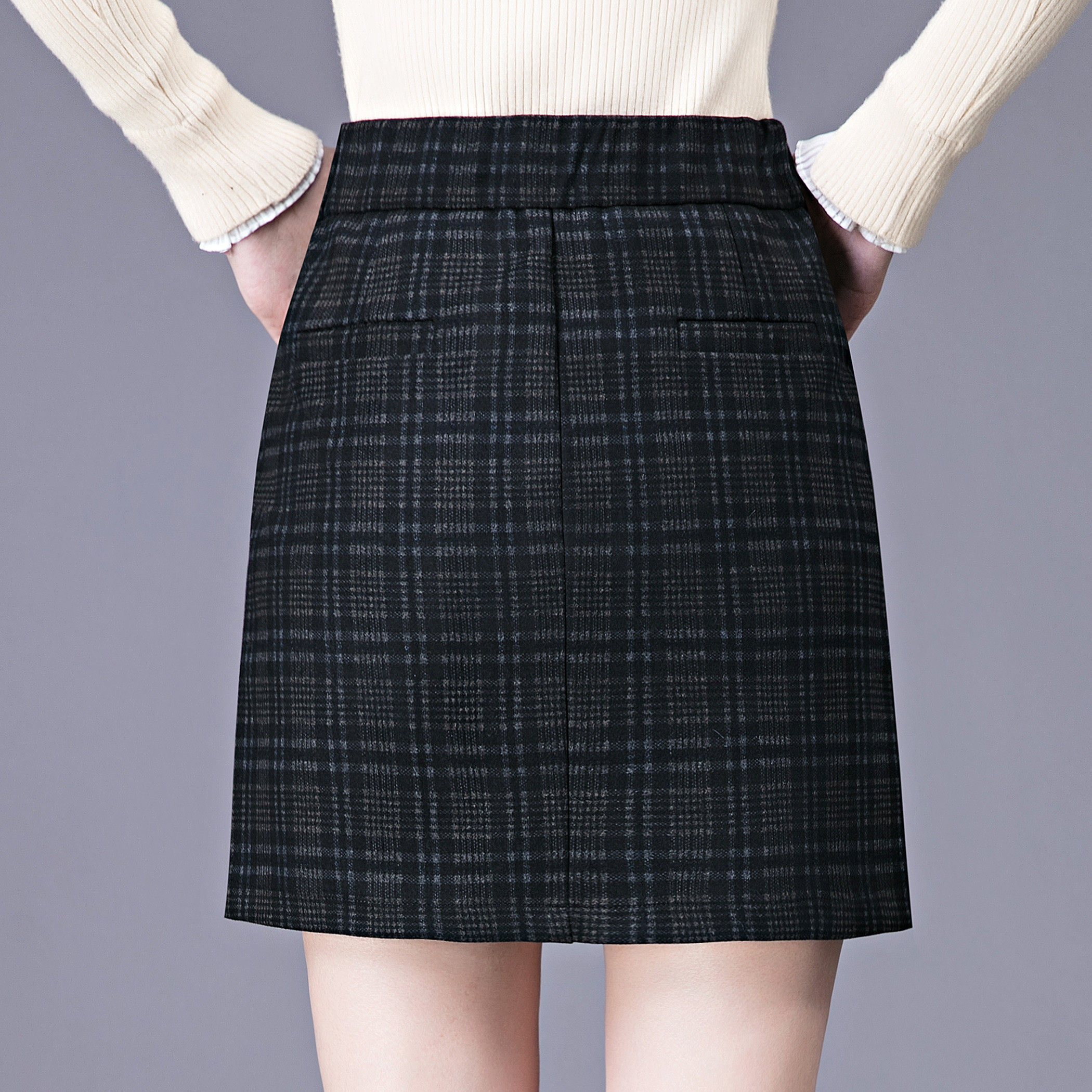 秋冬格子短裙女弹力松紧高腰宽松显瘦大码 包臀半身裙a字裙一步裙