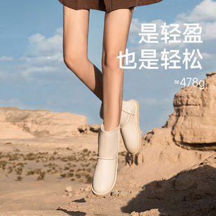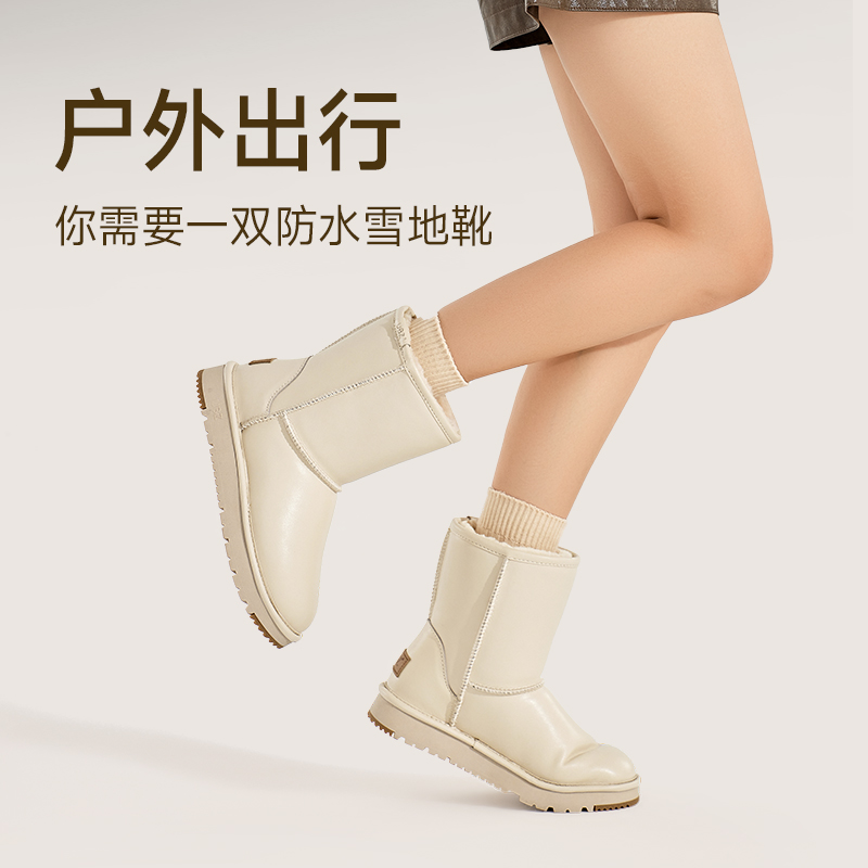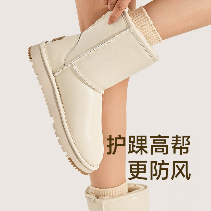 加绒真皮加厚保暖棉鞋 UBZ 防水皮面雪地靴女中筒靴子冬2025年新款