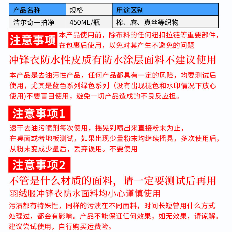 环保服装 洁尔奇715一拍净 护理剂去油污清洗剂 洗衣液干洗 服装