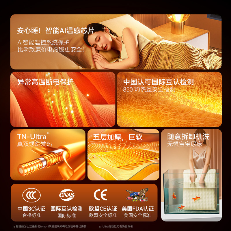 TOMONI电热毯2025新款 单人电褥子家用双人双控调温官方旗舰店正品