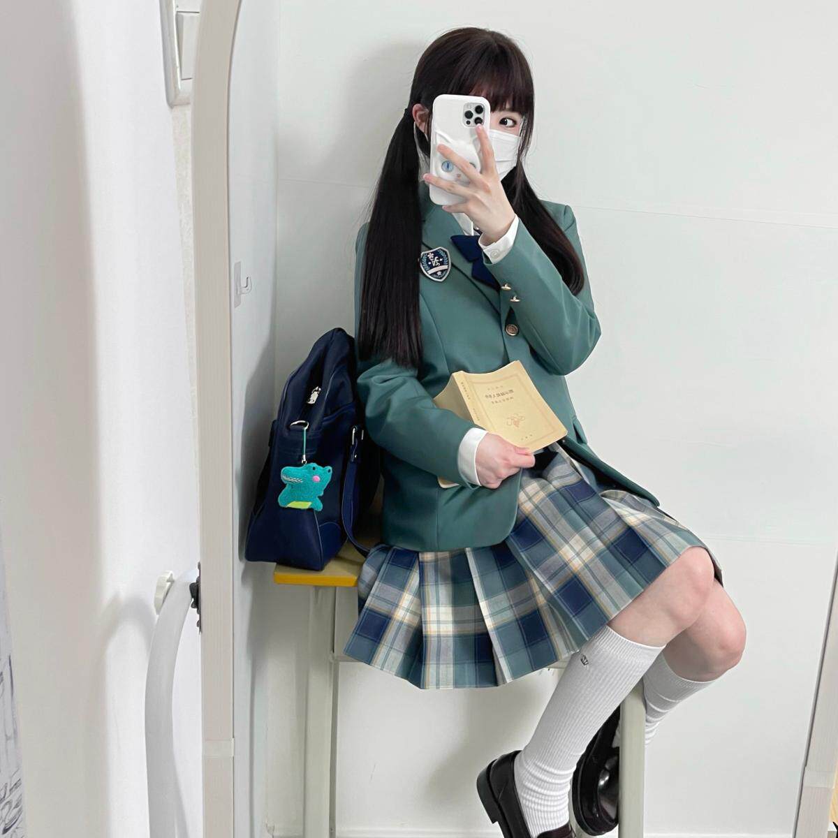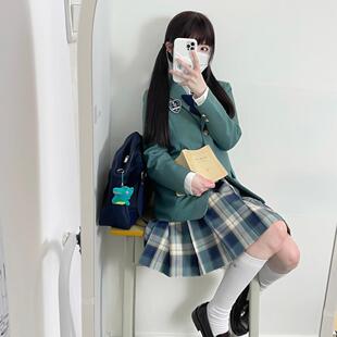春日部 原创绿蓝色格裙jk制服校供感女百褶秋冬半身裙 淞野学园