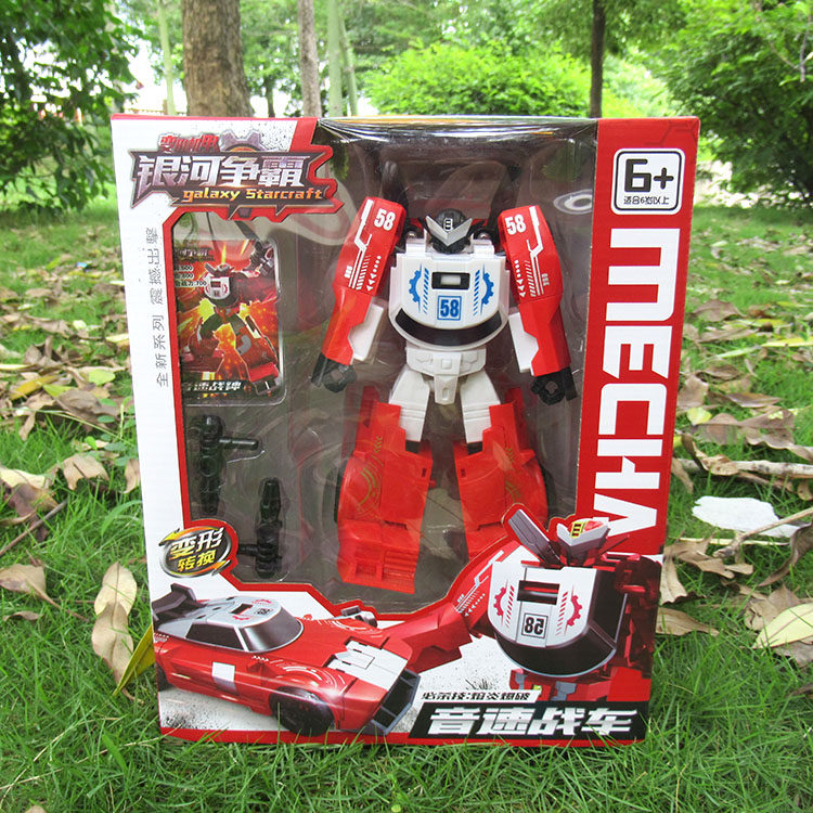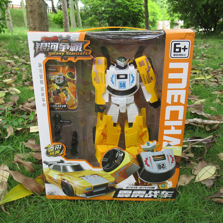 YTH039 银河争霸变形警车战斗卡男孩玩具车模型手动手板汽车人