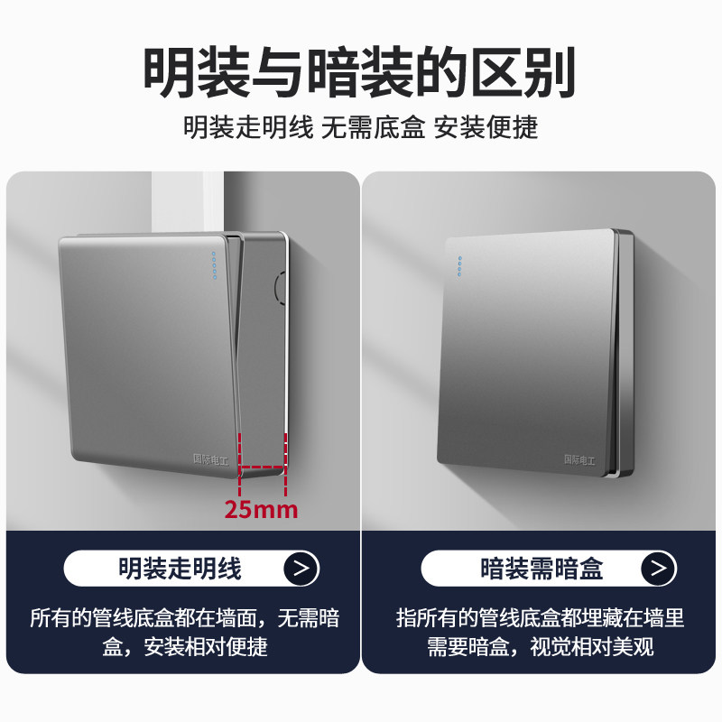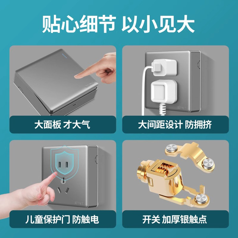 国际电工大板明装 开关插座面板家用墙壁一开5五孔16A空调十孔15孔