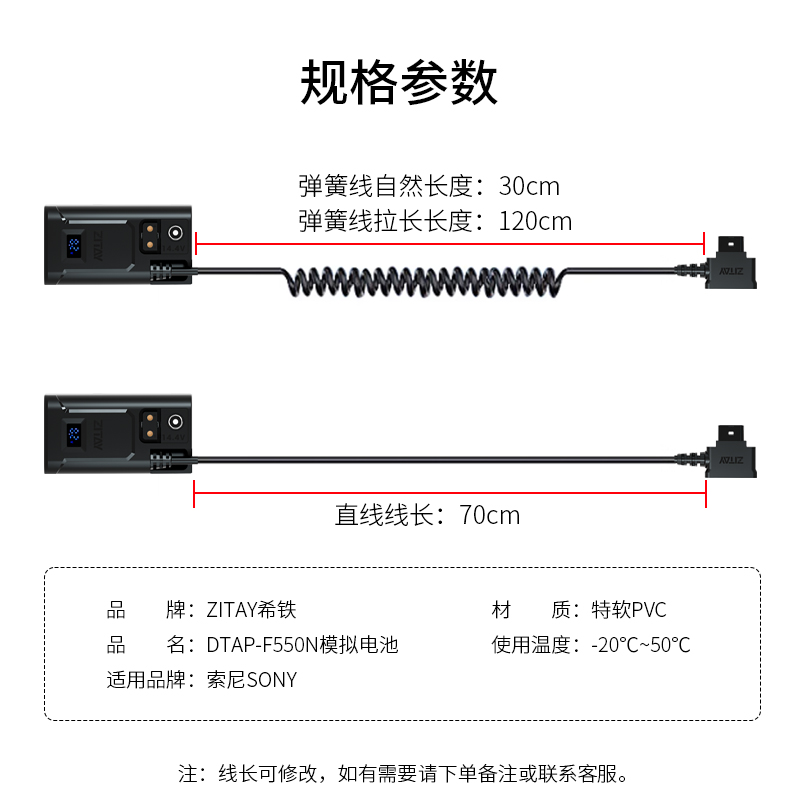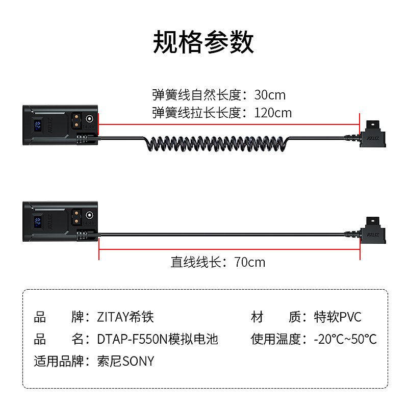 F530供电ATOMOS阿童木SHOGUN ZITAY希铁D F750 F970 INFERNO监视器V口电源线 TAP雷莫转F550模拟假电池相机NP
