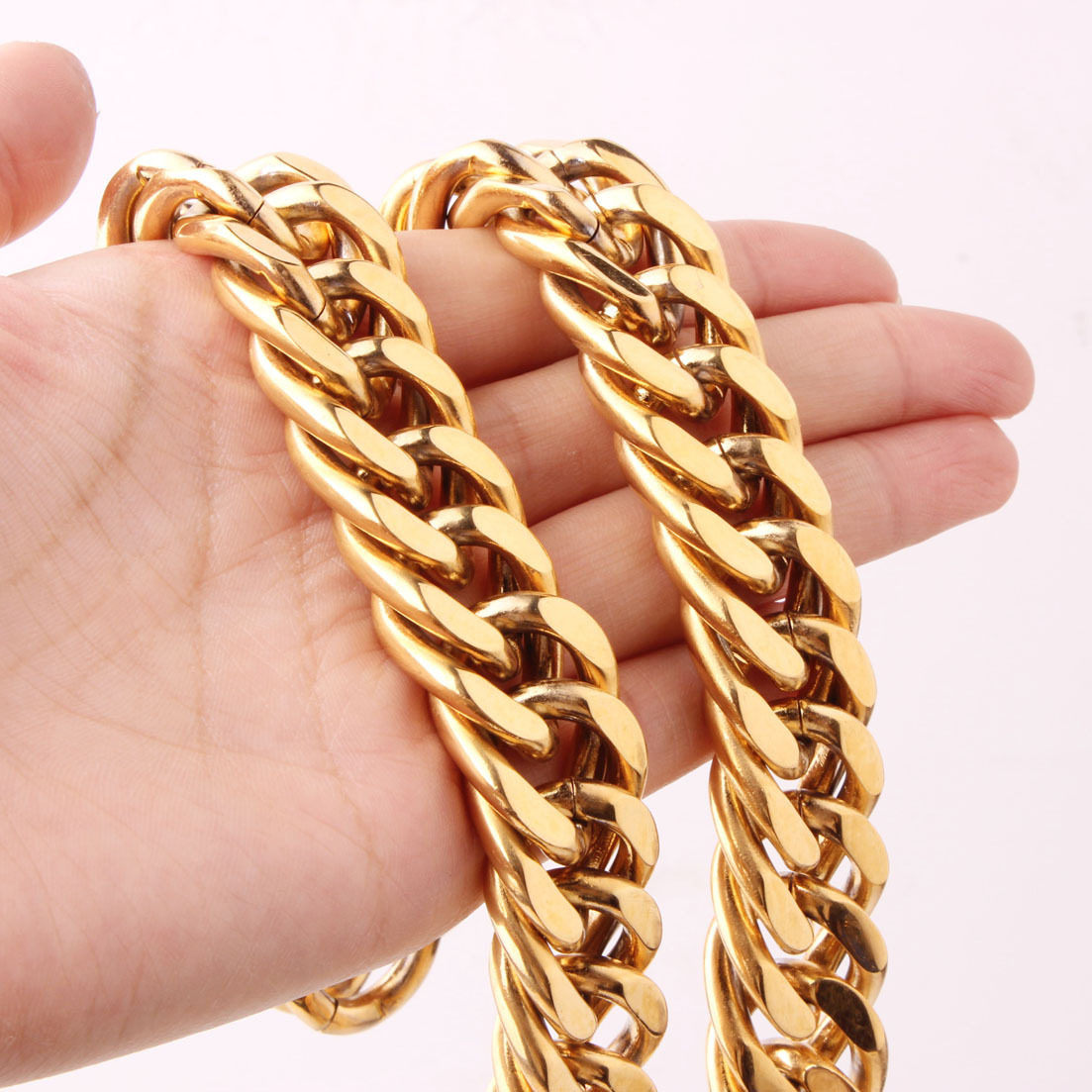 粗款 日韩百搭双层不锈钢颈链手链 霸气钛钢项链 金色和钢色男士