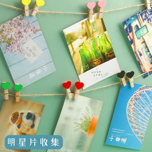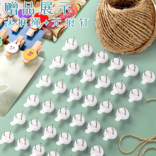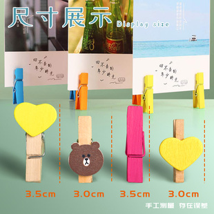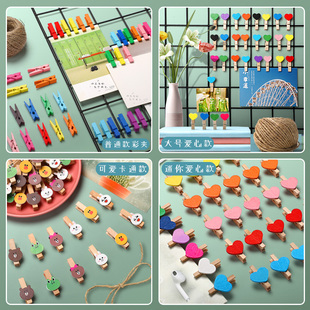 彩色照片夹子照片墙装 扮带绳照片墙小夹子 饰挂绳创意卡通木质可爱少女心小木夹相片明信片摆件用家用办公墙装