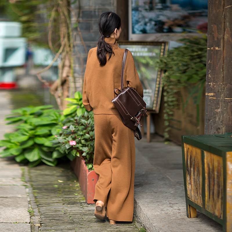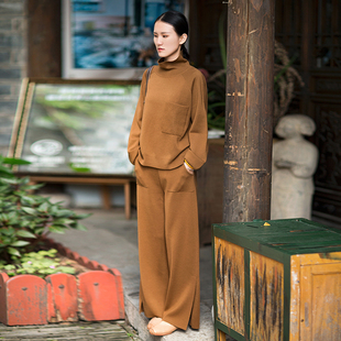 秋色印象 女长裤 2021秋季 文艺全绵羊毛驼色直筒裤 新款 忘城M742座