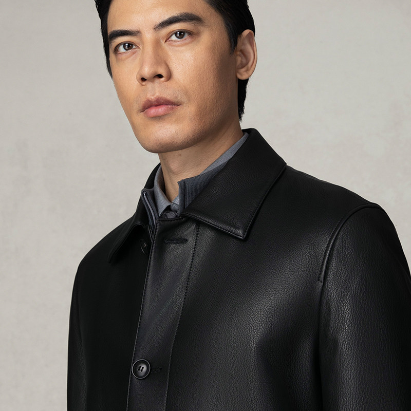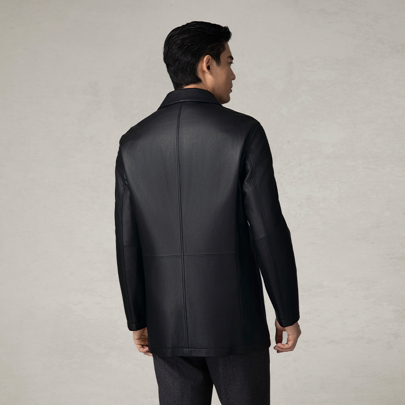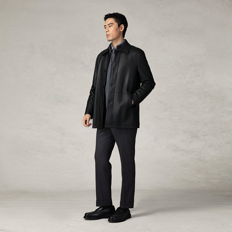 皮衣绵羊皮时尚 格罗尼雅男士 翻领简约皮夹克男 GORNIA 行政皮夹克