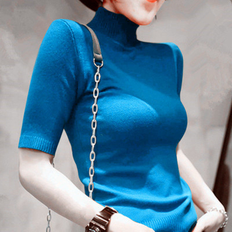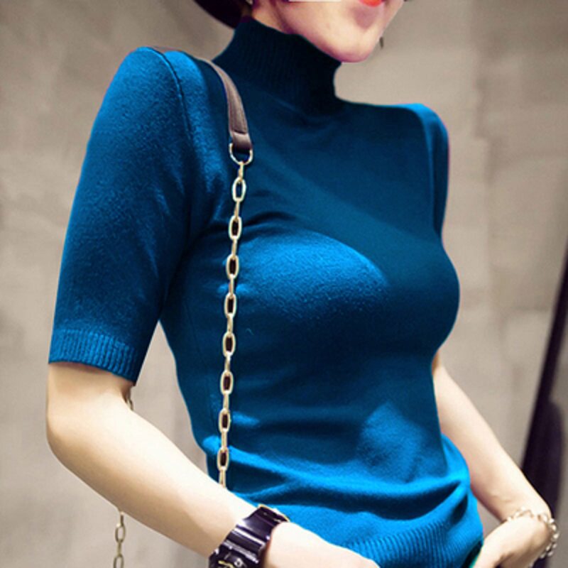春秋冬季 针织衫 毛衣女装 五分袖 气质半高领上衣 大码 打底衫 胖mm中袖