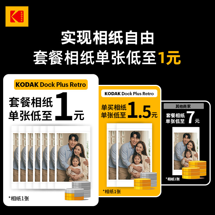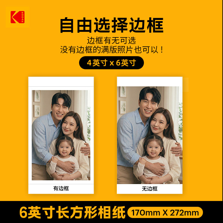 4英寸 120张 一次成像相纸 80张 60张 6英寸 3英寸 2英寸 色带一体化 柯达拍立得照片打印机相纸 KODAK