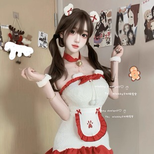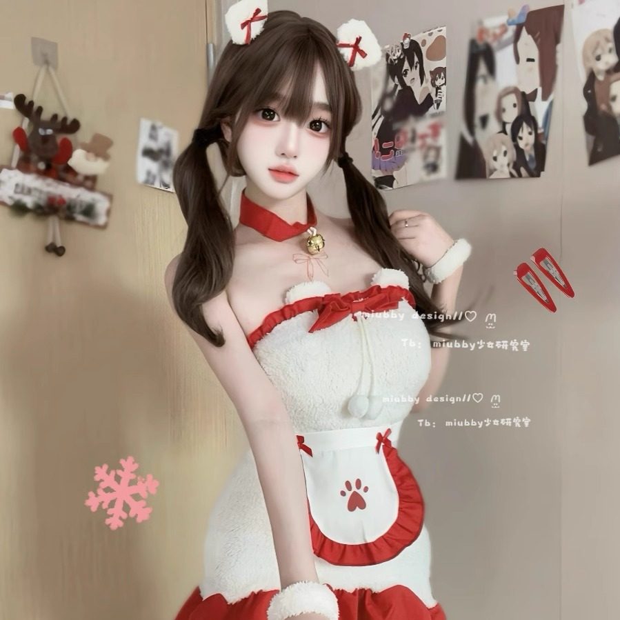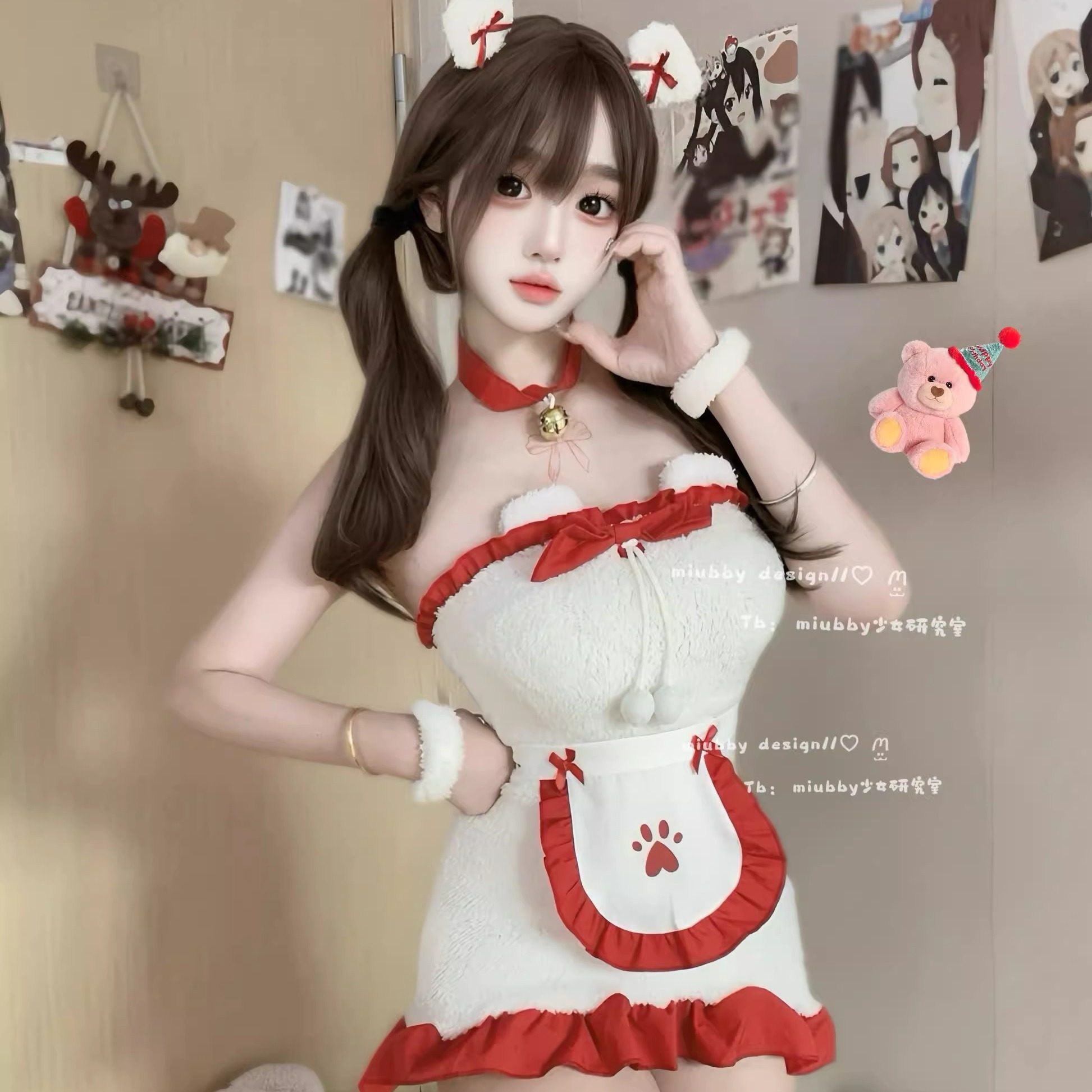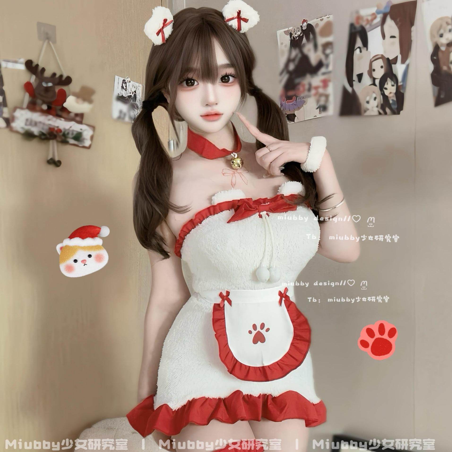 Miubby「叮铃小熊饼」日系纯欲毛绒抹胸包臀裙可爱女仆圣诞睡裙