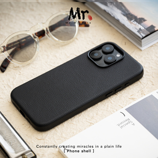 13promax时尚 简约轻奢个性 全包 真皮防摔 保护套 可磁吸 法国epsom掌纹小牛皮适用于iPhone16 创意