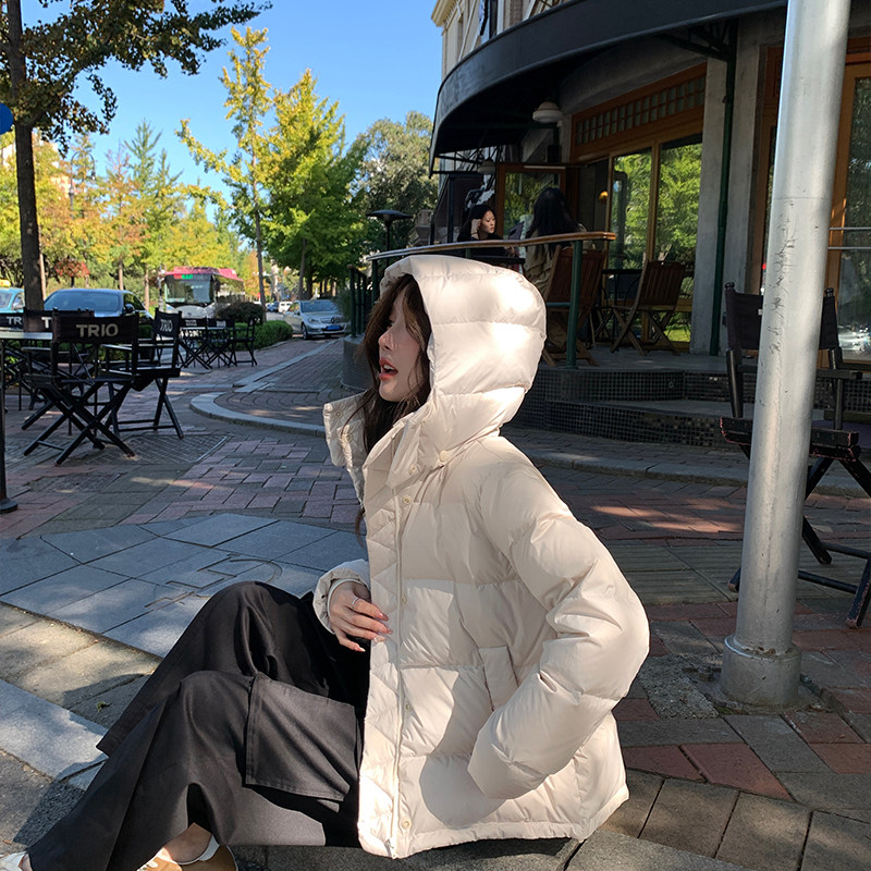 alex 羽绒服女冬白鸭绒面包服连帽加厚外套 stevens超好看白色短款