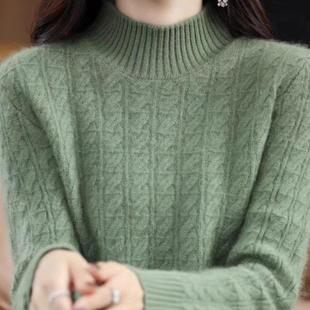 羊绒毛衣女秋冬半高领打底衫 内搭上衣宽松纯色 加厚针织衫