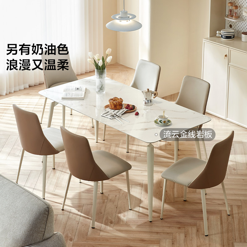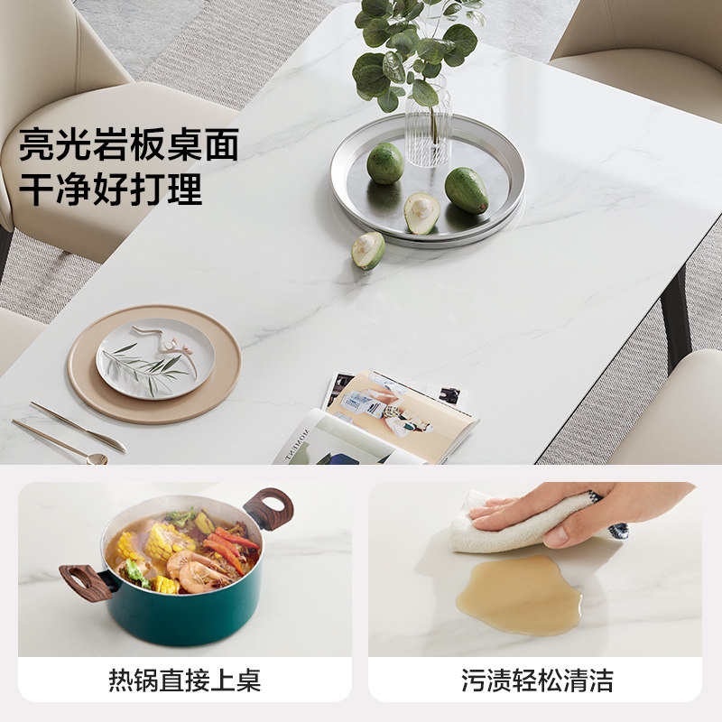 国补意式 极简小户型长方形家用客厅现代简约岩板餐桌轻奢餐椅组合