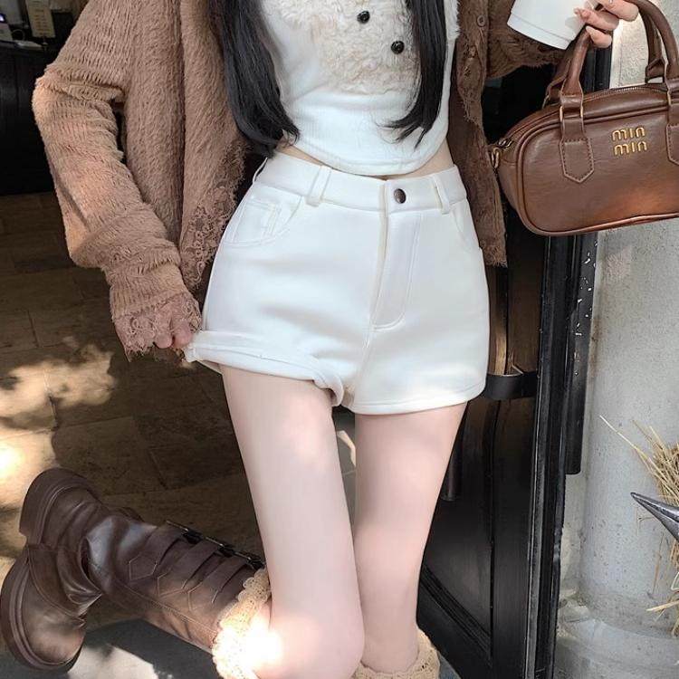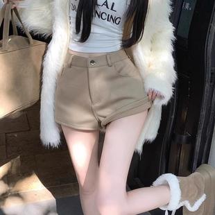 显瘦小个子高腰休闲辣妹a字热裤 修身 女秋冬2025新款 白色直筒短裤
