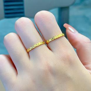 爆款 轻奢碎碎冰戒指女小众设计网红满天星钛钢镀18k金素圈食指环