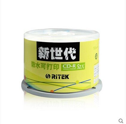 52速 50片 RITEK 刻录盘 桶装 新世代防水可打印 铼德 700M