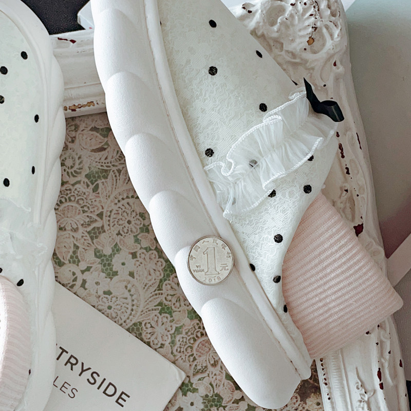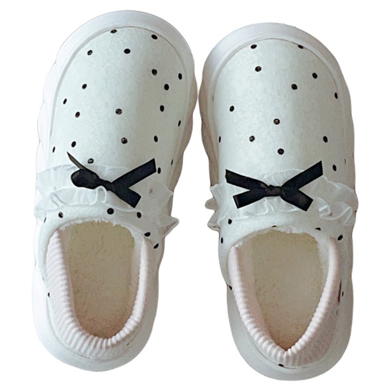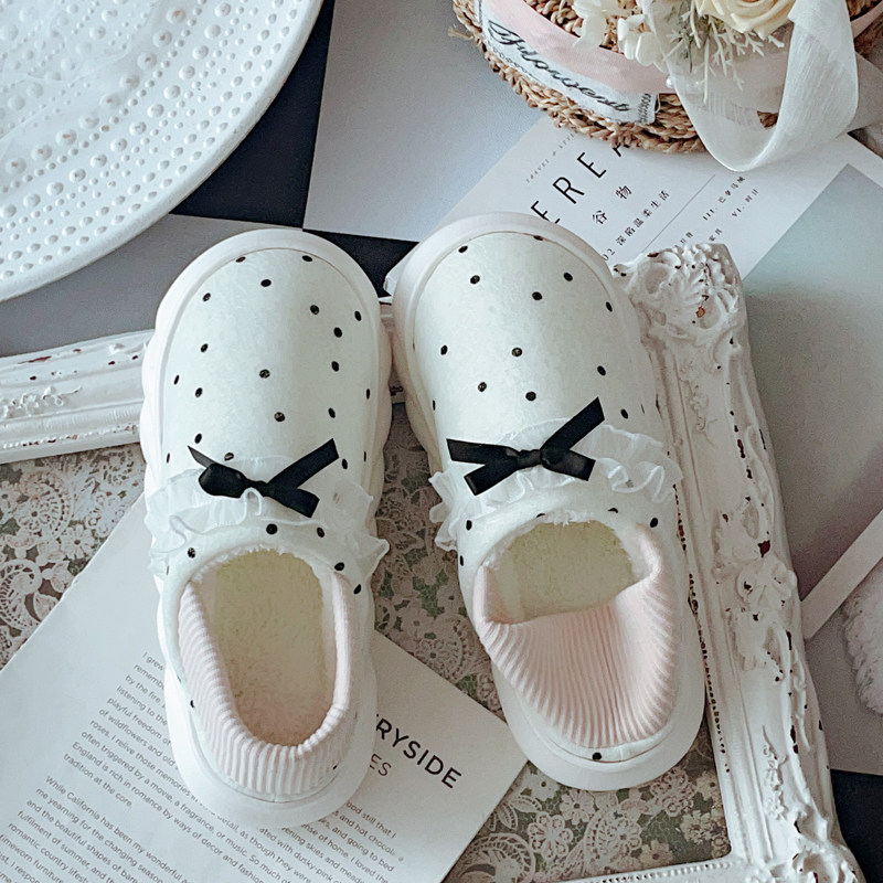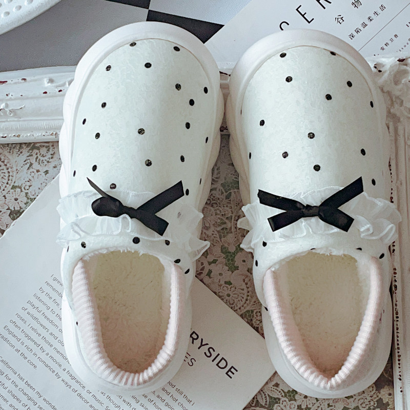 新款 女冬季 室内居家用毛绒绒软底保暖厚底 俏皮千金包跟棉拖鞋 法式