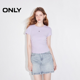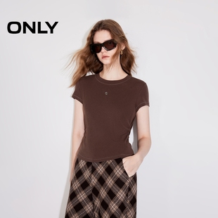 绫致ONLY春夏新款 亲肤正肩圆领T恤女 基础百搭纯色修身
