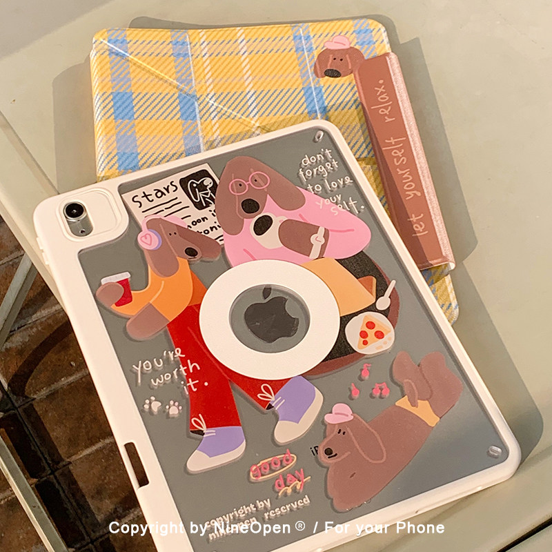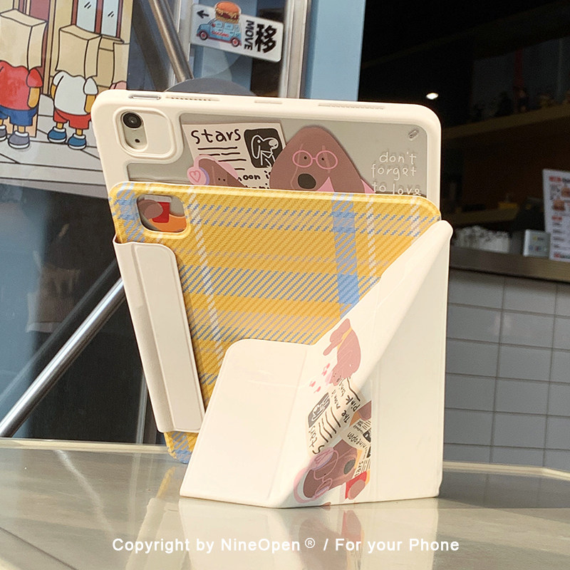 第12代 pro12.9寸mini7 平板带笔槽可拆 ipadair8保护套air7 九点半复古格纹腊肠狗磁吸分离适用2026新款