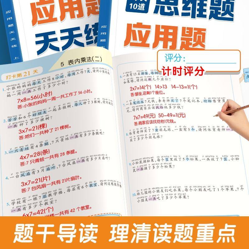 二年级数学应用题强化训练人教版 练习题计算题练习 上册数学思维训练下册每天10道专项训练天天练小学2年级思维训练每日一练竖式