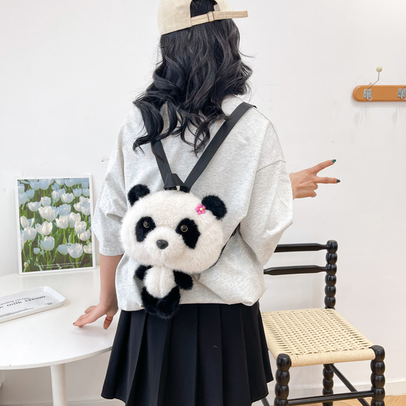 卡通小熊猫毛绒儿童包包可爱女童小背包秋冬新款 亲子小女孩斜挎包