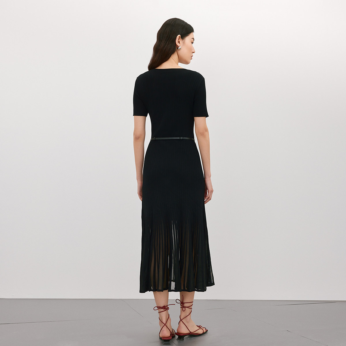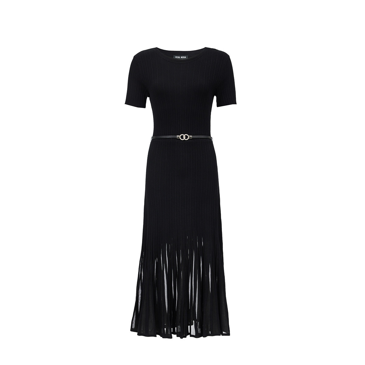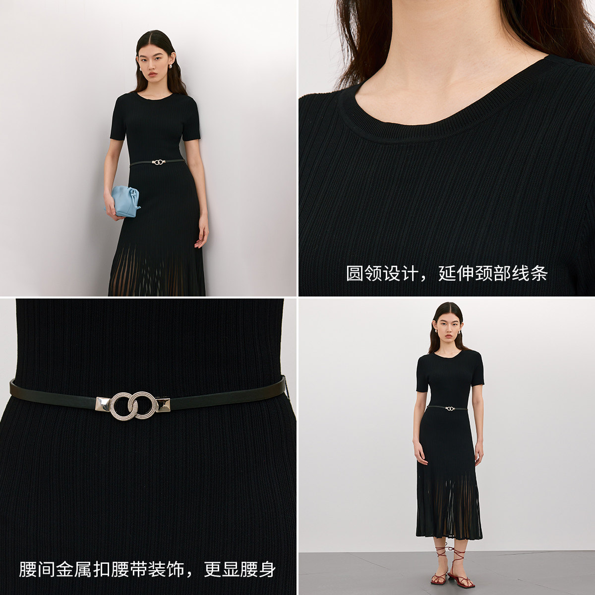 Vero 纯色圆领下摆拼接针织裙优雅气质 Moda奥莱连衣裙女春夏新款