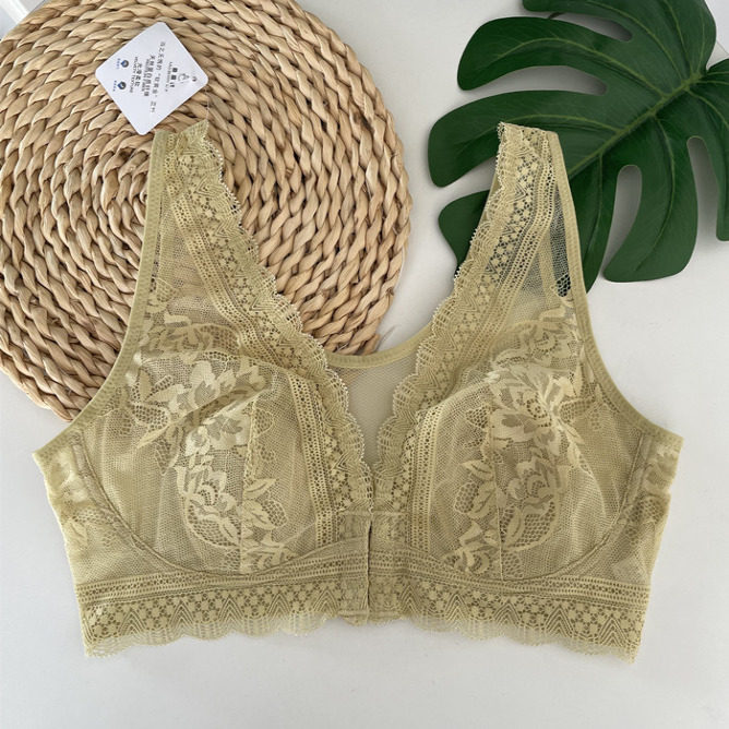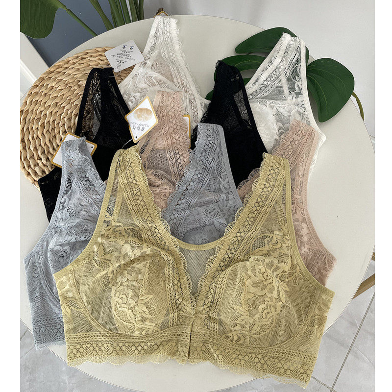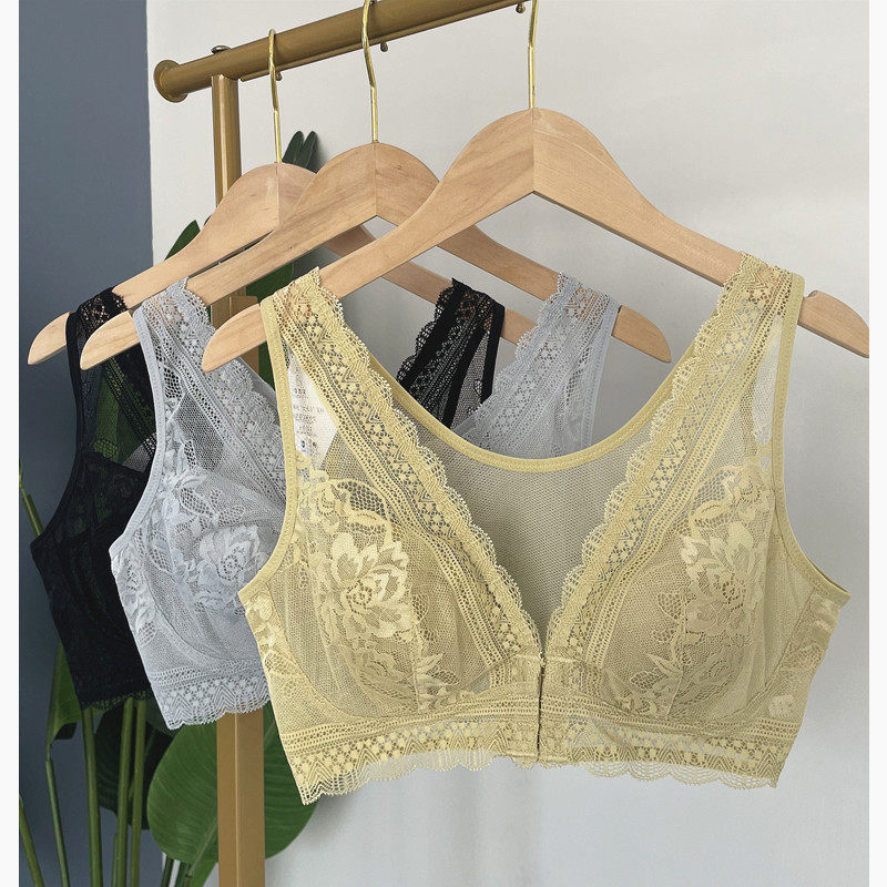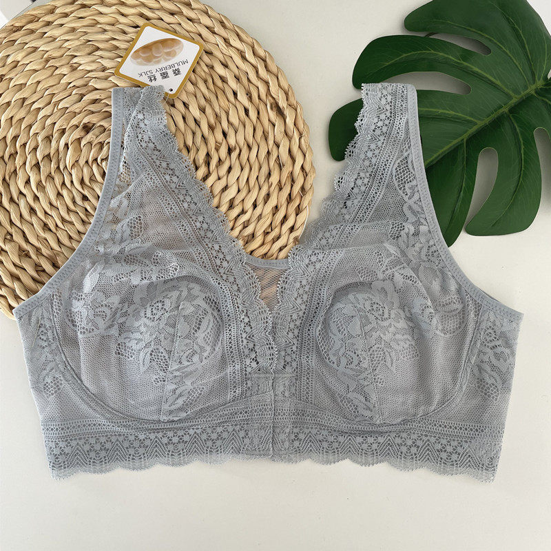 文胸大胸显小 背心式 新款 外贸前开扣蕾丝兔耳朵文胸桑蚕丝超薄大码
