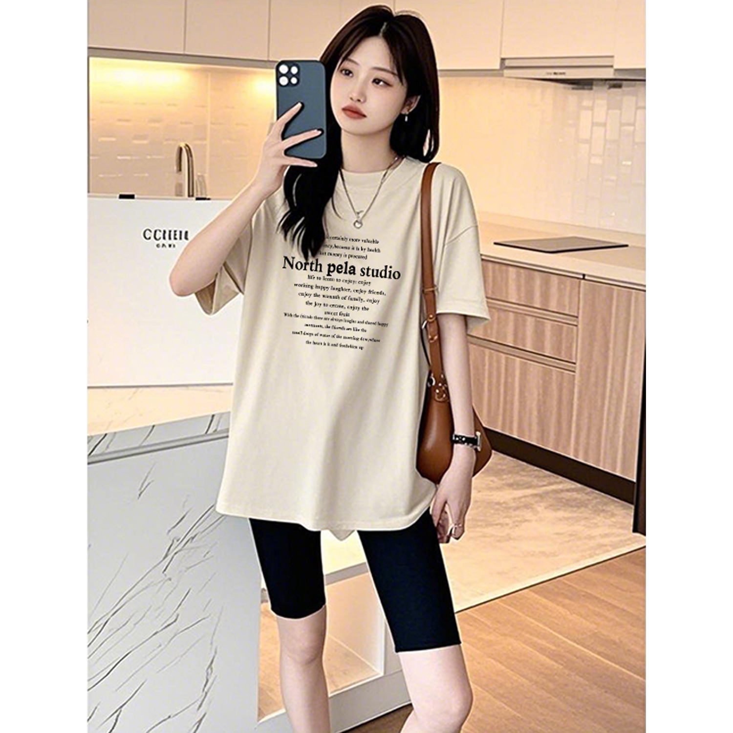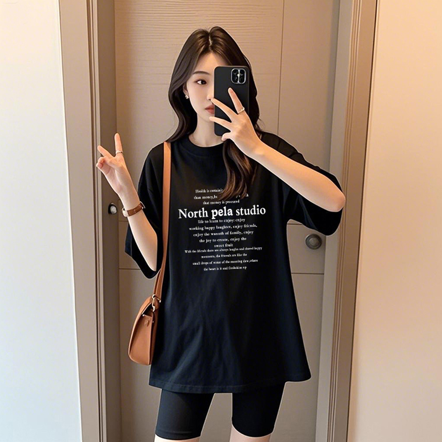 春夏两件套 宽松圆领字母印花T恤上衣五分打底裤 孕妇套装 2025新款