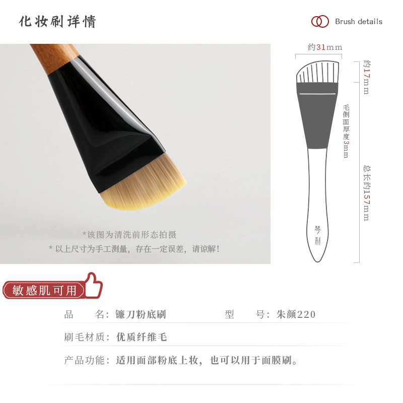 魅仔Y34斜坡腮红膏刷粉底刷膏状液体修容刷一支装 面部定妆化妆刷
