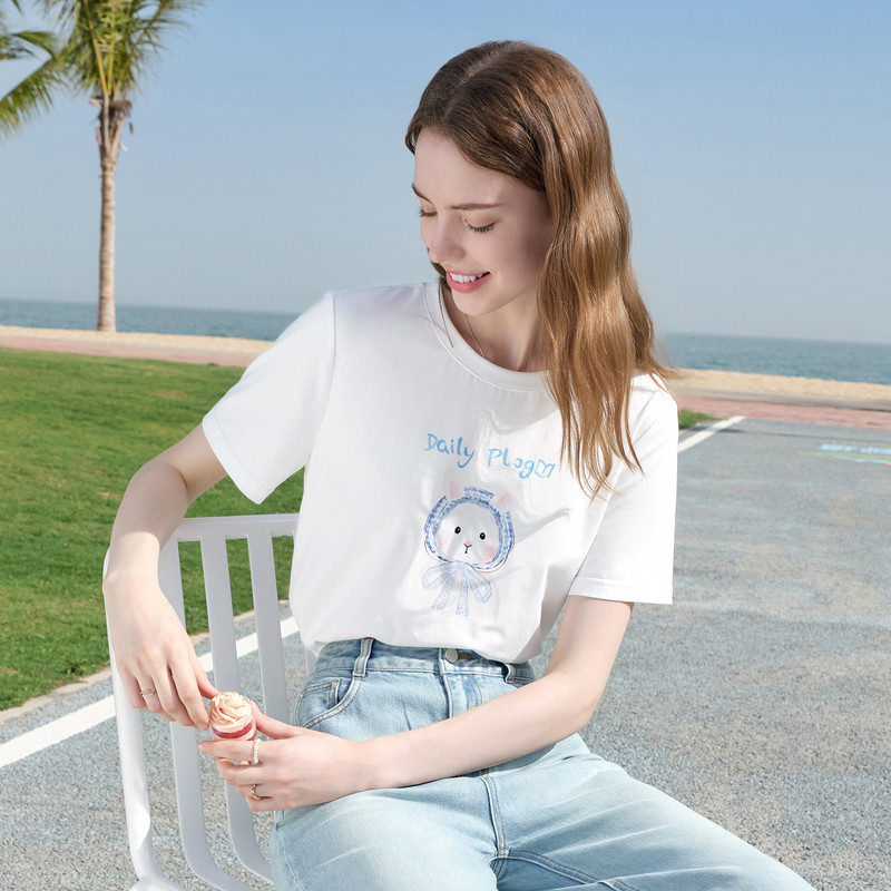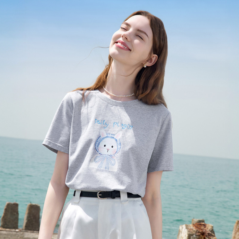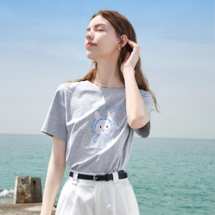 betu百图趣味印花短袖 圆领纯棉透气T恤小众设计感上衣女 夏季