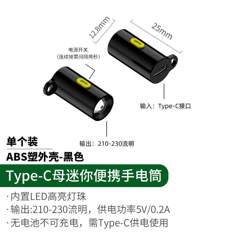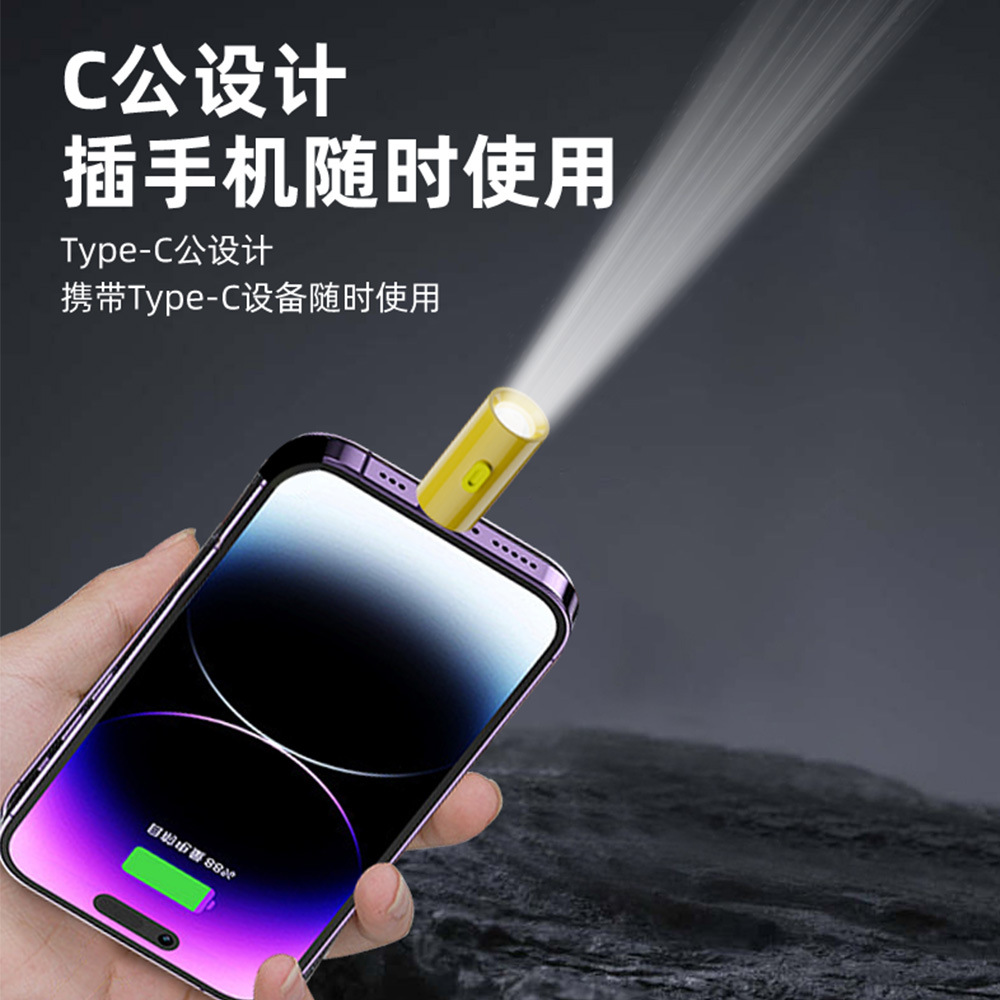 迷你手电筒type c转强光灯便携户外手机充电宝外接免充电补光神器