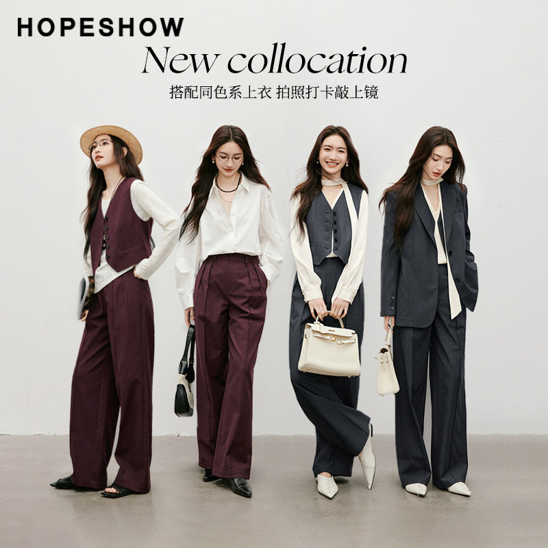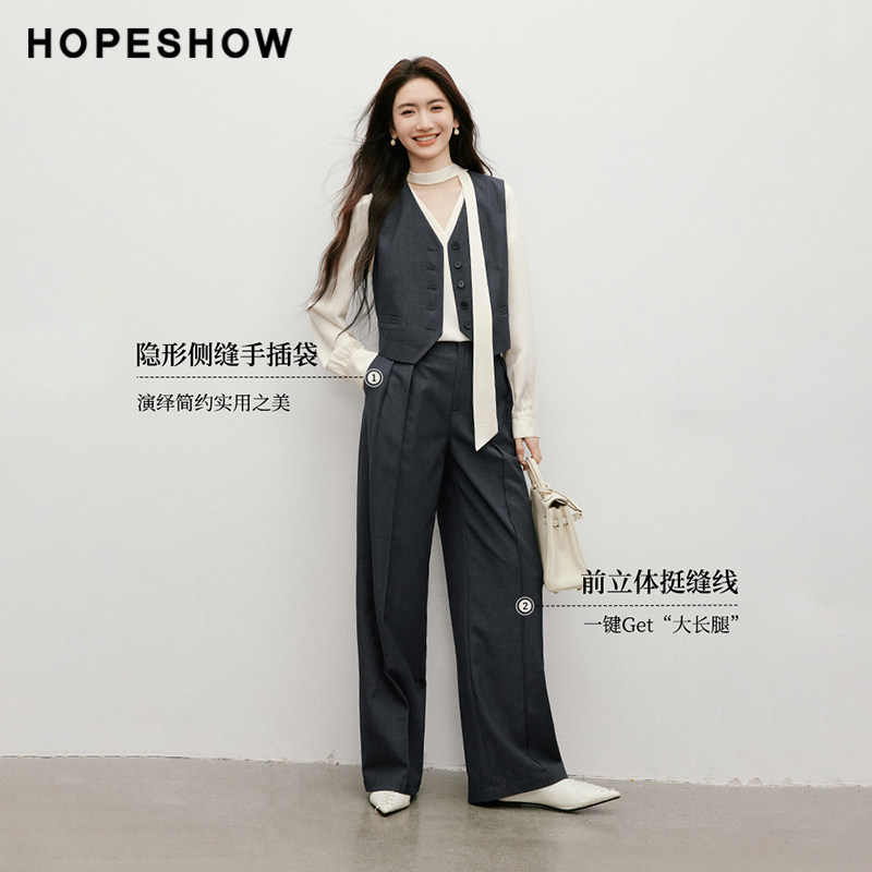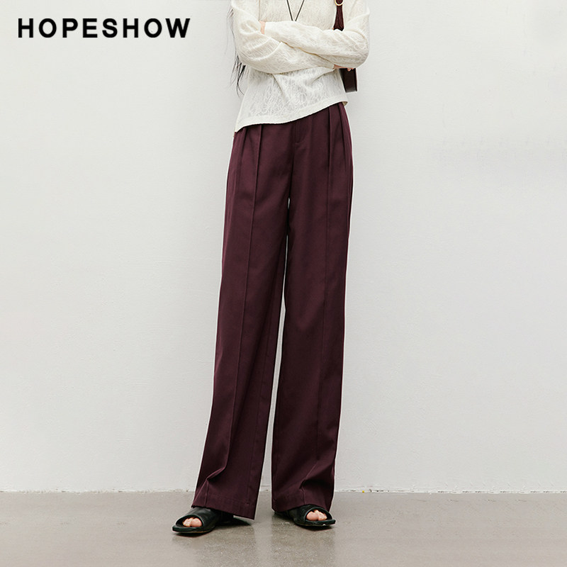 纯色挺缝线直身休闲长裤 红袖 女装 2025新款 春季