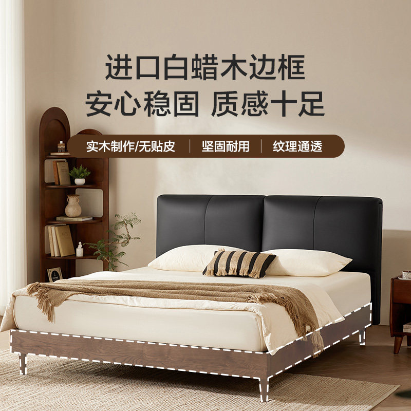 政府补贴喜临门实木框架极简全真皮床卧室高端大气双人床 榛果S