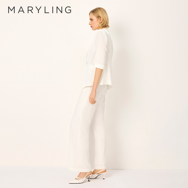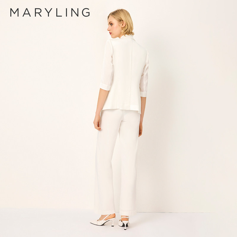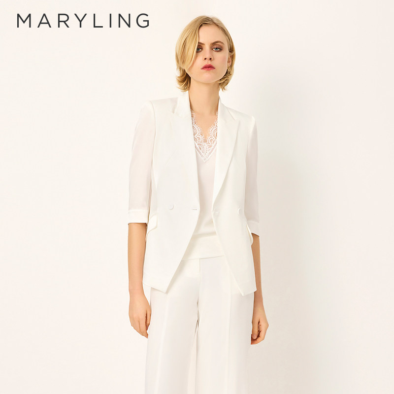 MARYLING玛俪琳2025夏七分袖 A1FCW10230 戗驳领极简风钻石剪裁西装