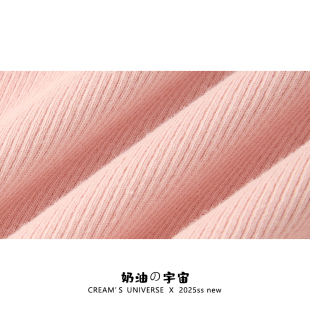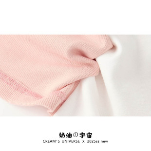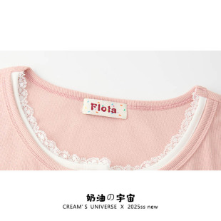T恤女设计感显瘦甜美小上衣夏 蕾丝假两件针织正肩短袖 奶油 宇宙
