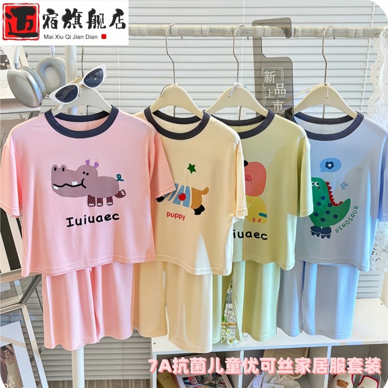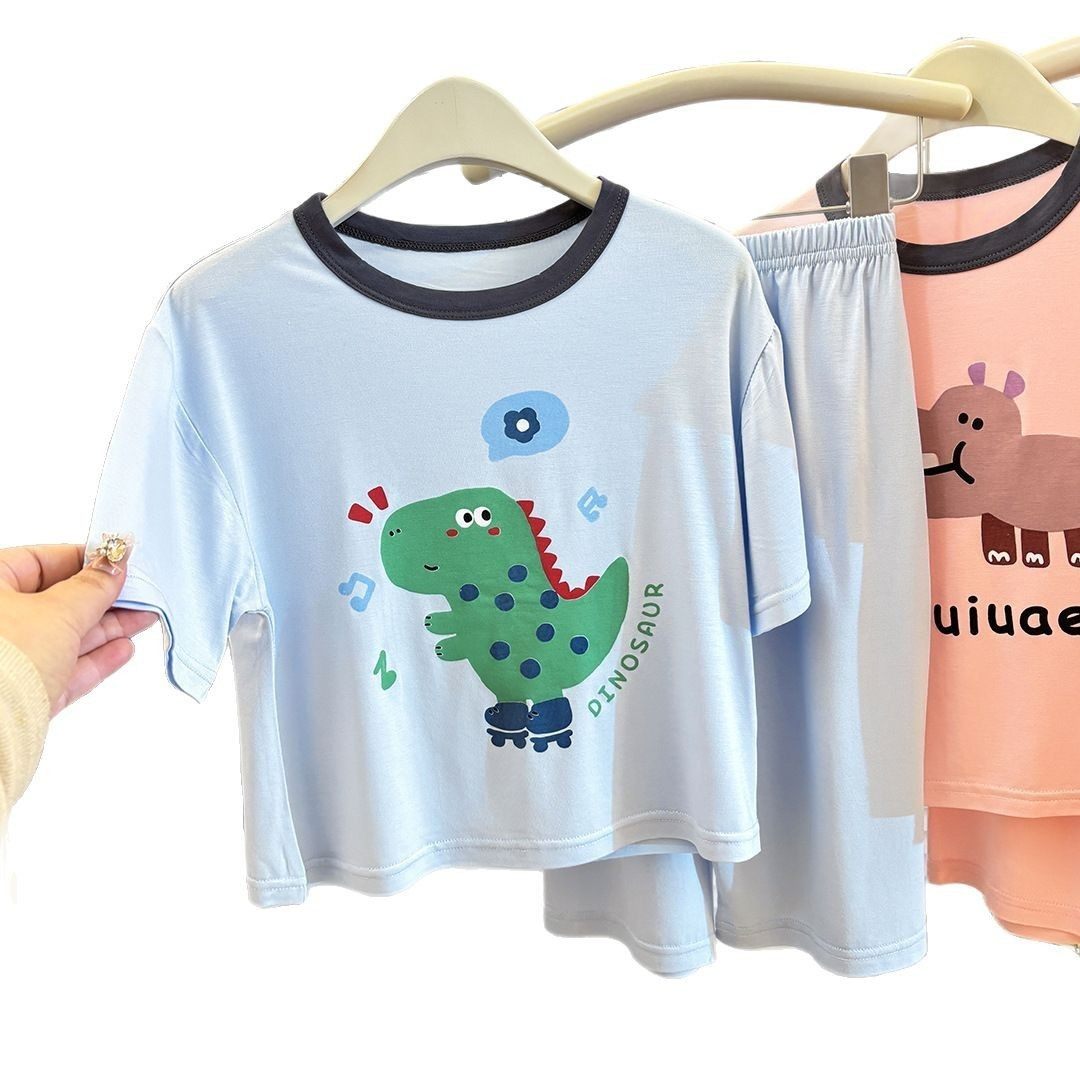 大童学生长袖 夏季 空调家居服薄款 棉绸睡衣男士 男童 青少年绵绸套装