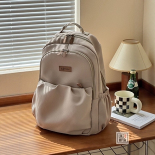原创自制日韩简约拉链加厚电脑双肩背包大学高中书包校园通勤书包
