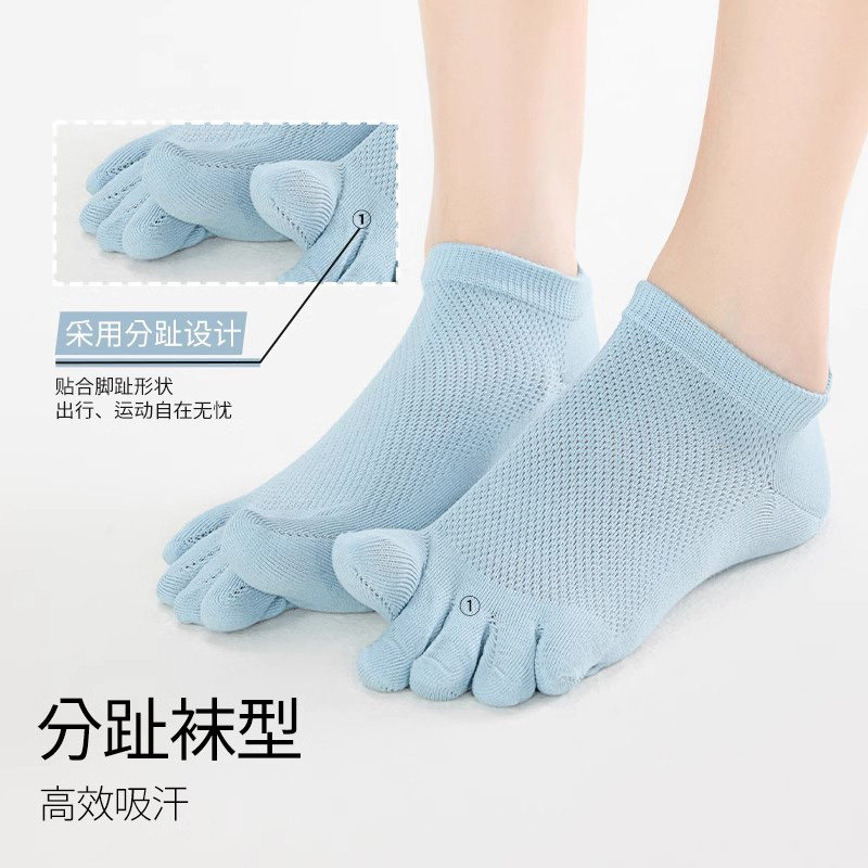抗菌防臭吸汗女士短袜 百搭透气分趾新款 五指袜子女春夏季 网眼薄款