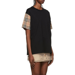 黑色 Vintage BURBERRY T恤女装 80430571 格纹衣袖 女士衬衫