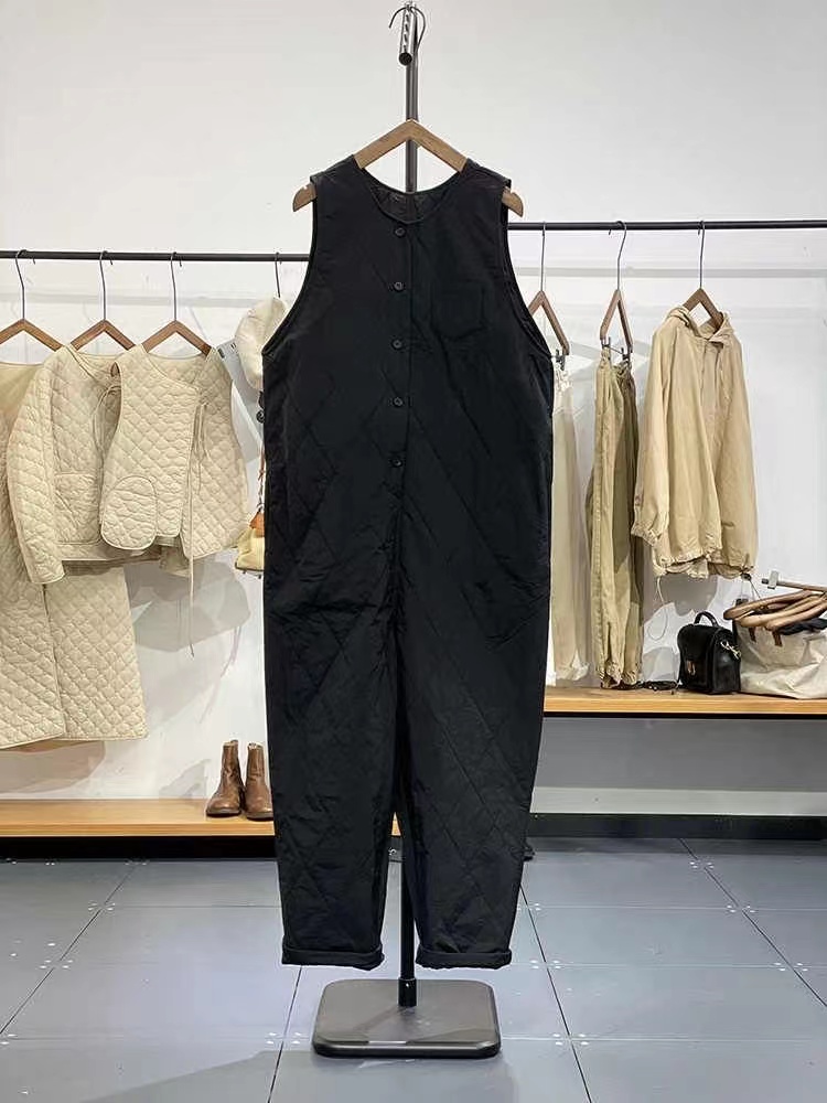 夹棉保暖休闲裤 外贸日单大码 秋冬洋气百搭背带裤 连体裤 文艺范工装