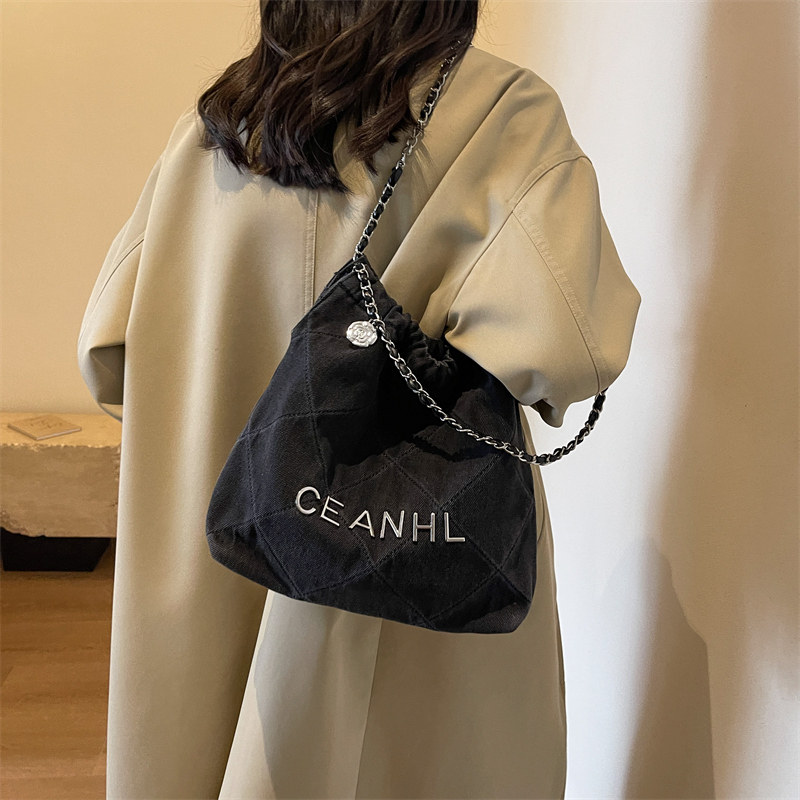 大容量高级黑金亮片单肩帆布休闲布袋通勤复古女包秋冬托特包包