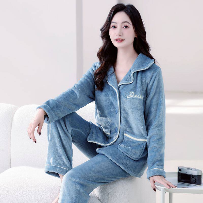 半边绒保暖女士家居服套装 mikko联名新款 果壳睡衣女冬季 Gukoo