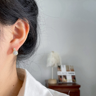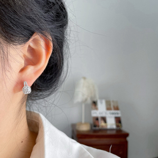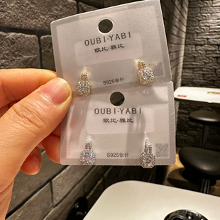 s999纯银方糖锆石耳钉女足银养耳洞耳骨钉爆闪轻奢高级感银针耳饰