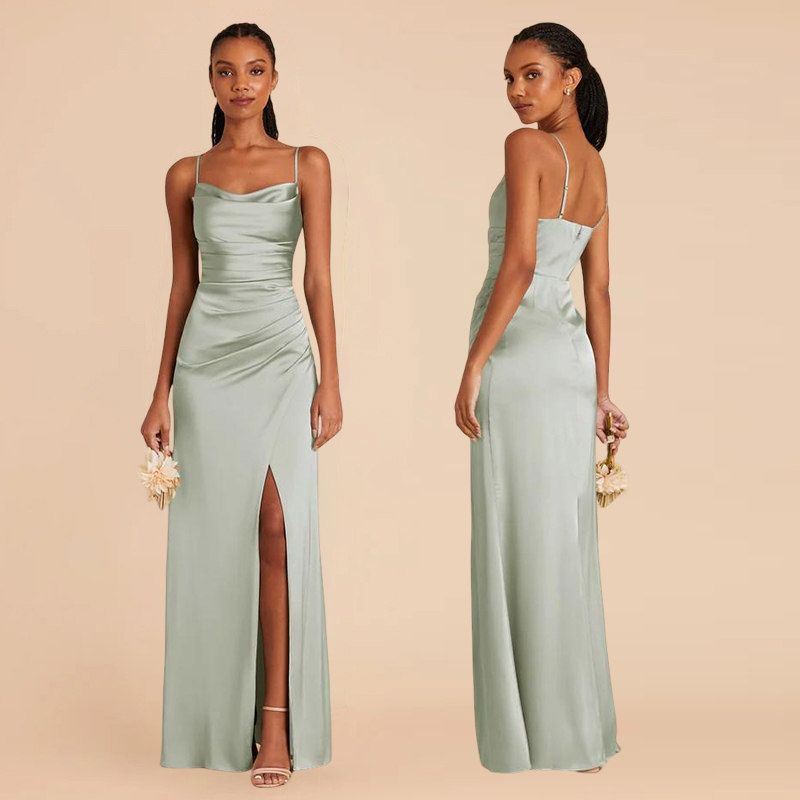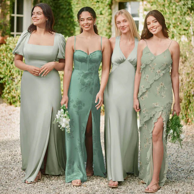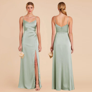 绿色缎面伴娘服礼服裙2026新款 平常可穿高级感小众显瘦遮肉姐妹团