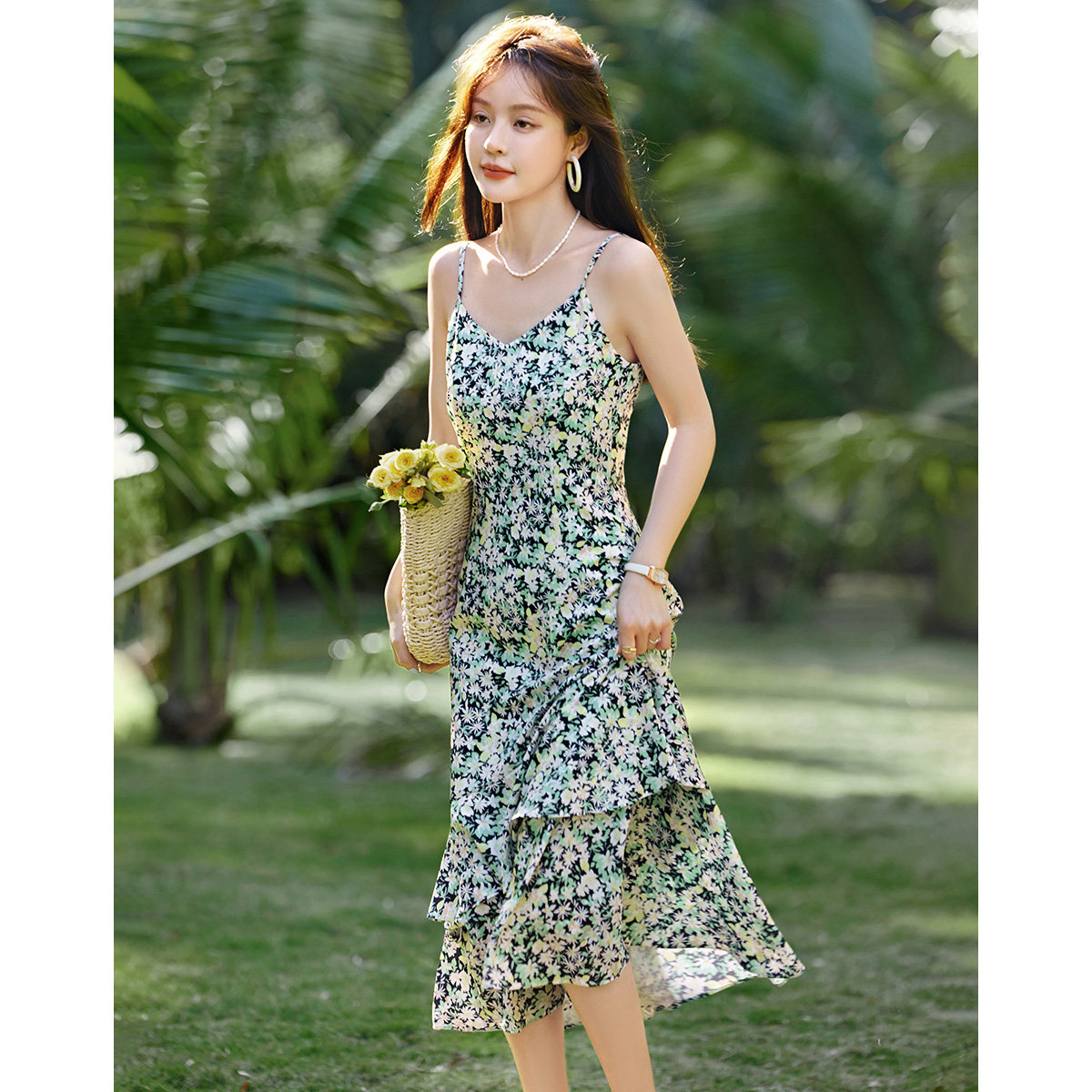 沫晗依美夏日度假清爽碎花吊带连衣裙2025夏季 显瘦浪漫连衣裙 新款