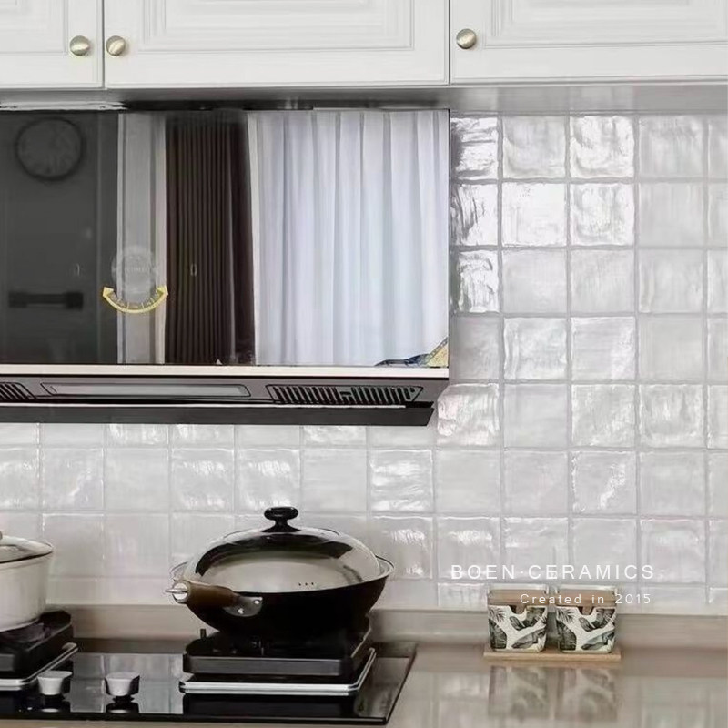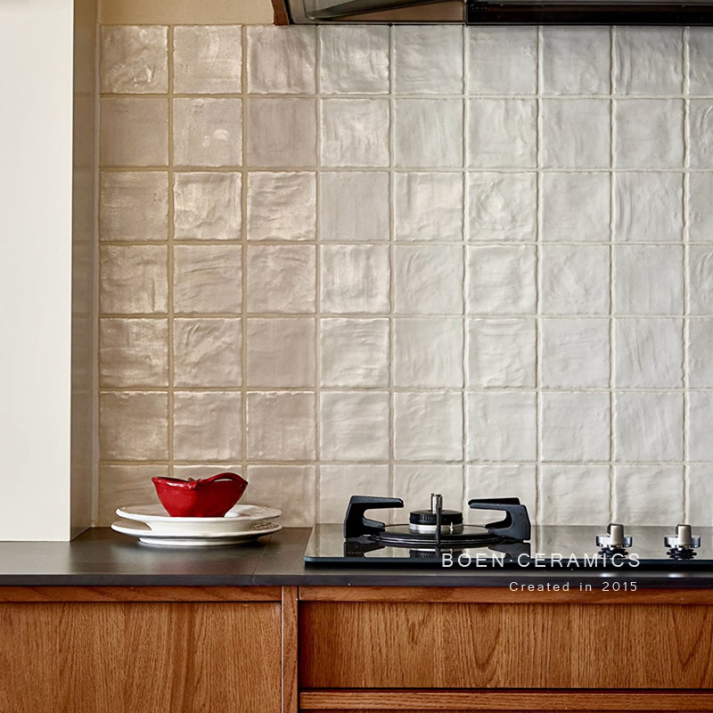 法式 复古奶油色珍珠釉手工砖厨房卫生间小方砖厕所瓷砖咖啡店墙砖