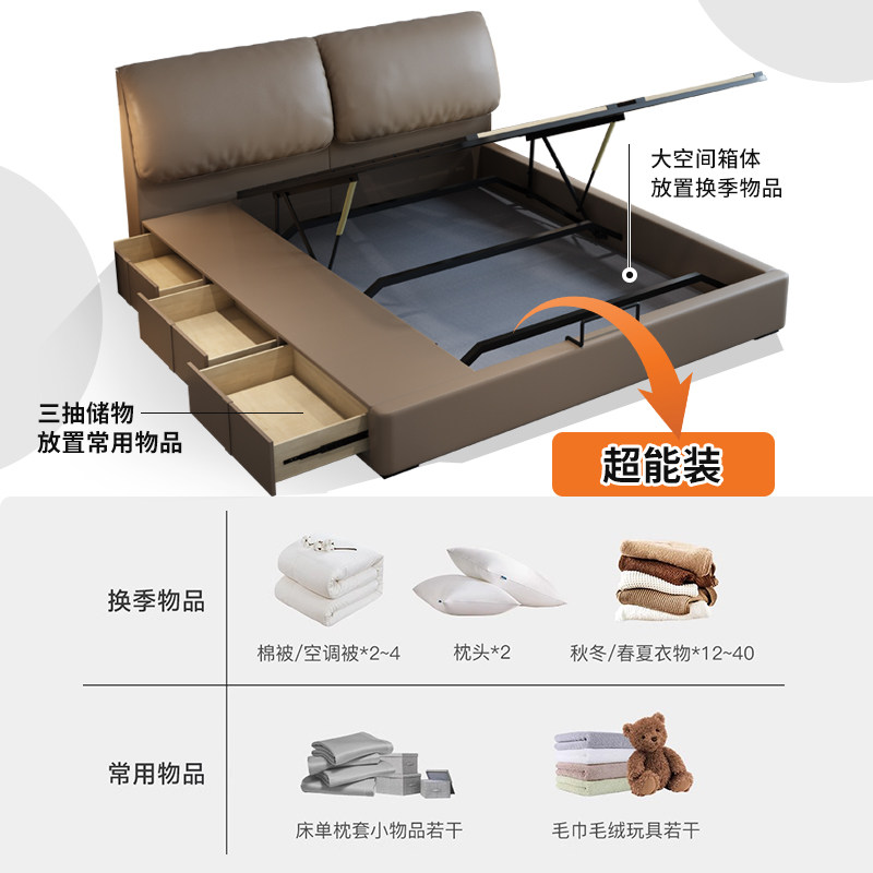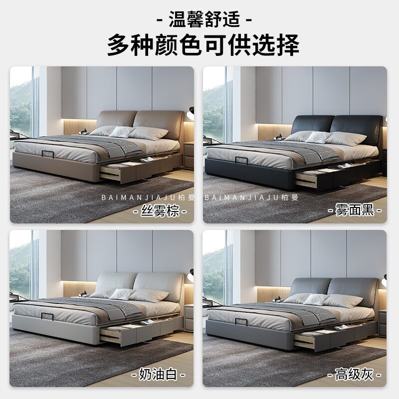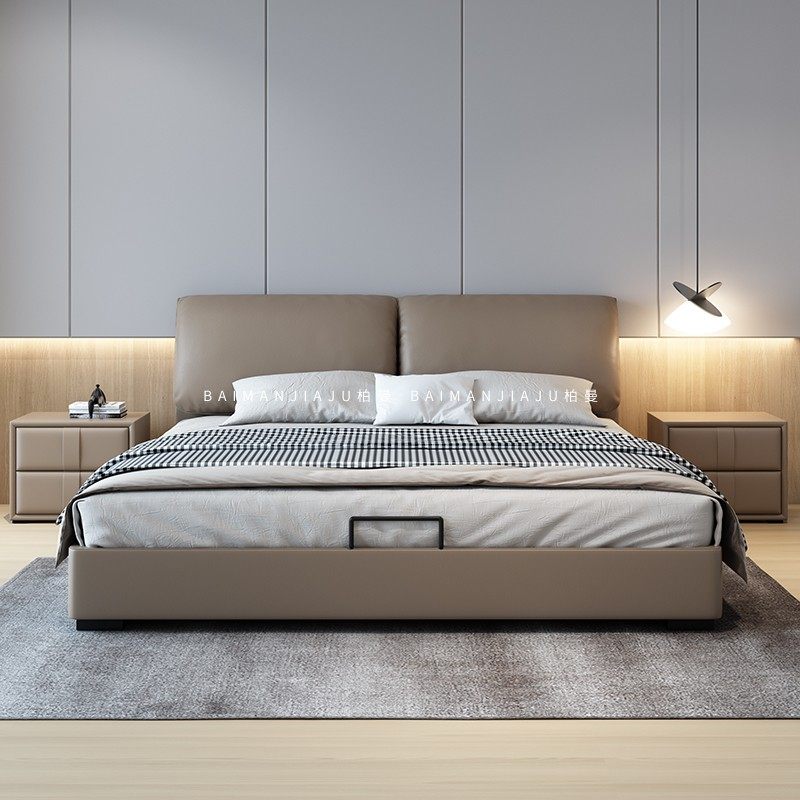 柏曼家具大象耳朵真皮床2米气压储物双人床收纳床意式 极简婚床